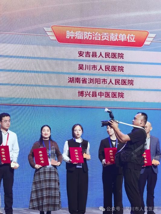 受院党委书记李权委托,我院肿瘤科护士长黄军梅代表医院登台领奖,这是本次评选中粤西地区唯一获此殊荣的医疗单位,标志着我院肿瘤防治工作获得国家层面的高度认可。