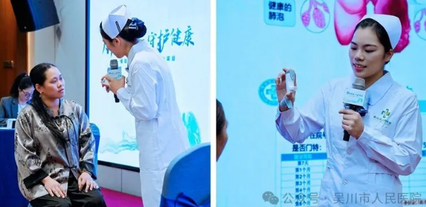 当天还由湛江中心人民医院、吴川市人民医院和新兴县人民医院的护理人员进行了大白话教药技能展示-慢阻肺患者吸入用药教学。