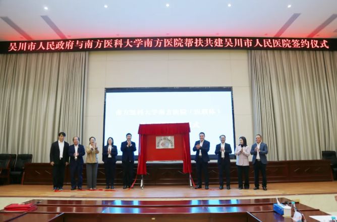 与会领导共同为“南方医科大学南方医院(医联体)吴川医院”揭牌。