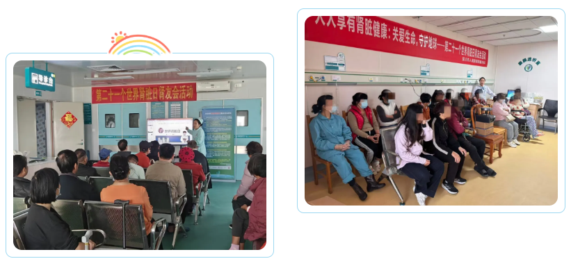 当天还举行“肾友会”活动,我院肾病内科的医护人员为肾友们开展科普讲座,用通俗直白的语言,细致讲解肾病日常防治、饮食调理、用药注意事项等实用知识,干货满满、贴近需求。